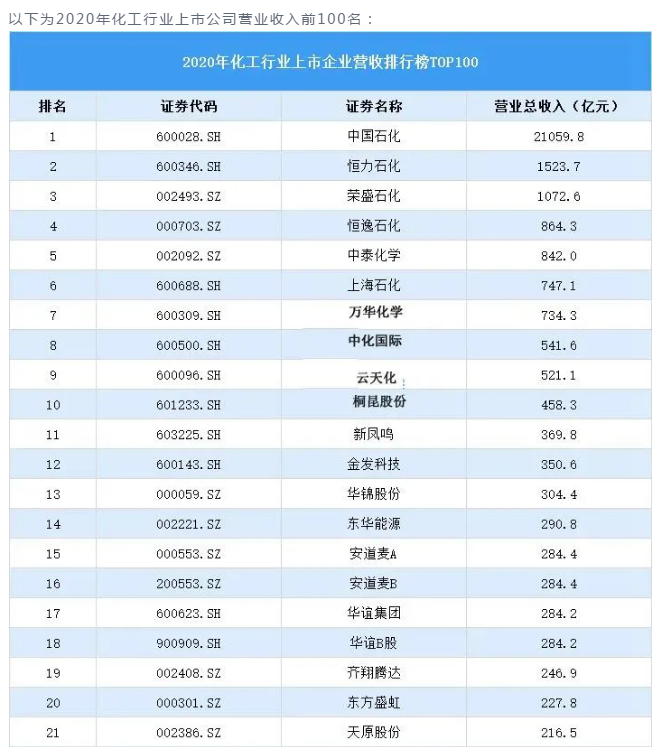 化工企業(yè)收入百?gòu)?qiáng) | 中國(guó)石化、恒力石化、榮盛石化破千億元!