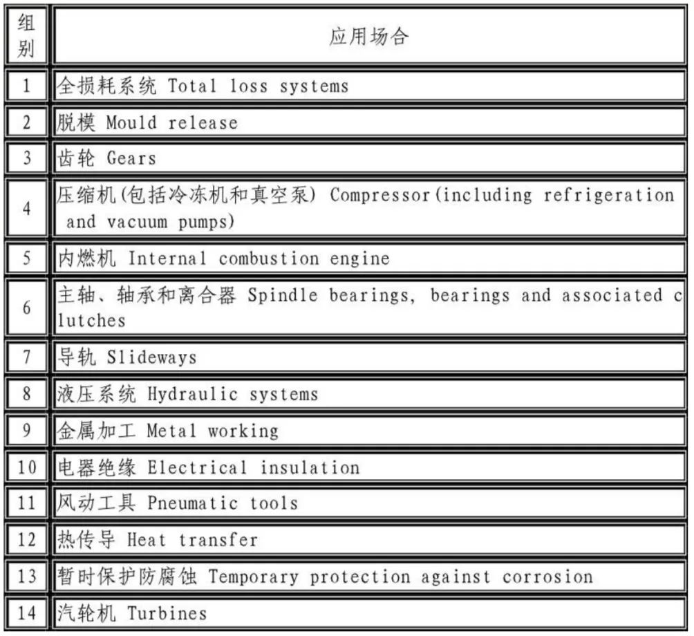 國(guó)際標(biāo)準(zhǔn)化組織(ISO)制定了ISO6743/0潤(rùn)滑劑、工業(yè)潤(rùn)滑油及有關(guān)產(chǎn)品(L類)分類標(biāo)準(zhǔn)。中國(guó)等效采用ISO6743/0標(biāo)準(zhǔn)。制定了國(guó)家標(biāo)準(zhǔn)GB7631。潤(rùn)滑劑和有關(guān)產(chǎn)品(L類)的分類。GB7631.1根據(jù)應(yīng)用場(chǎng)合將潤(rùn)滑劑和相應(yīng)產(chǎn)品分為以下各組。GB7631.1潤(rùn)滑劑和有關(guān)產(chǎn)品(L類)的分類第1部分。