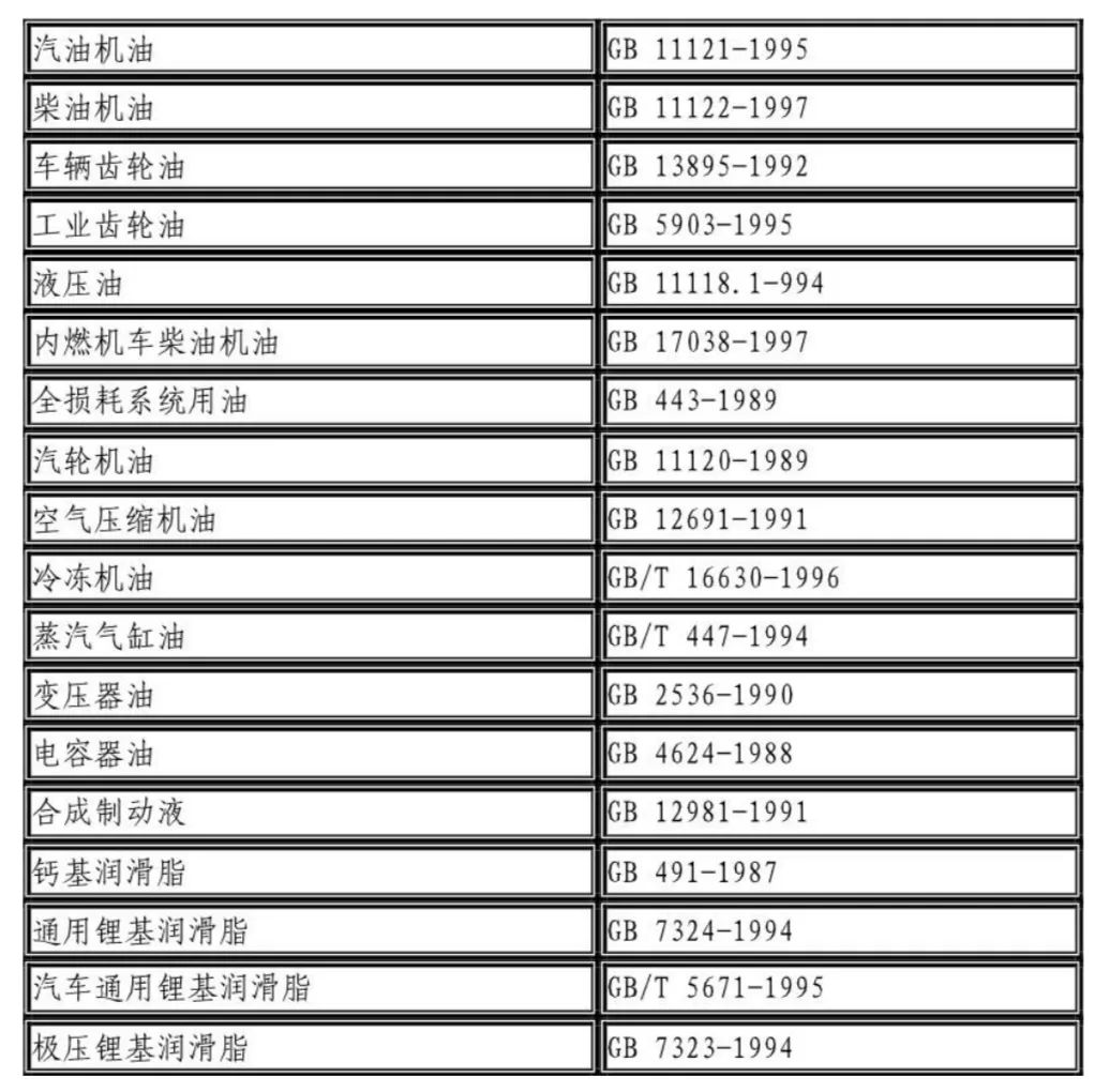 潤(rùn)滑油(脂)規(guī)格標(biāo)準(zhǔn)